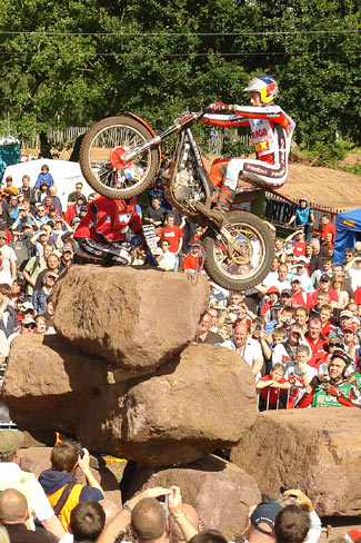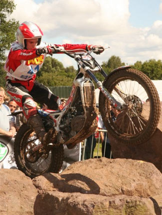 La mañana del domingo se presentaba expléndida, pese a las previsiones de lluvia y la que había caído en los días previos, el sol lucía y la temperatura se situaba en torno a los 26 grados. Comenzaba así lo más esperado del fin de semana, el público tenía ganas de ver un nuevo duelo entre Toni Bou y Adam Raga, pero sin perder las esperanzas en una posible gran actuación del ídolo local, el siete veces campeón Dougie Lampkin, y apoyando también a sus numerosos pilotos, como Jame Dabill o Michael Brown, que llegaba con todas las papeletas de hacerse con el título Junior, al igual que nuestro Alfredo Gómez en la categoría Youth 125.