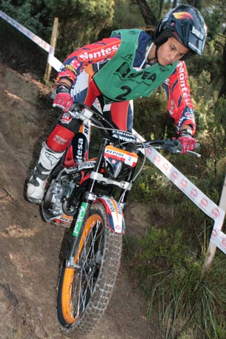 La piloto de Montesa HRC, era la más regular en un terreno castigado por las lluvias de los últimos días. Por este motivo, la organización se ha visto obligada a modificar algunas zonas, así como a anular la primera. Del resto de pilotos nacionales, destacaba la actuación de la joven Mireia Conde, que estaba novena con 37 puntos de penalización. Maddalen Aizpurua, con 41 puntos marchaba decimocuarta y justo tras ella Sandra Gómez con un punto más.