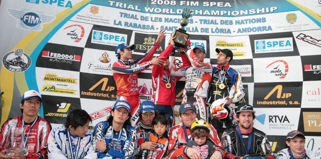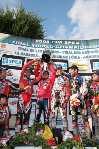 El equipo español de Trial, compuesto por Toni Bou (Montesa), Adam Raga (Gas Gas), Albert Cabestany (Sherco) y Jeroni Fajardo, ha vuelto a demostrar que es un equipo imbatible para el resto de países, después de vencer en la 25ª edición del Trial de las Naciones disputado en La Rabassa Sant Julià de Lória (Andorra) este fin de semana. Con este resultado, España consigue su 5º título consecutivo y el 15º en la historia en el Trial de las Naciones.
