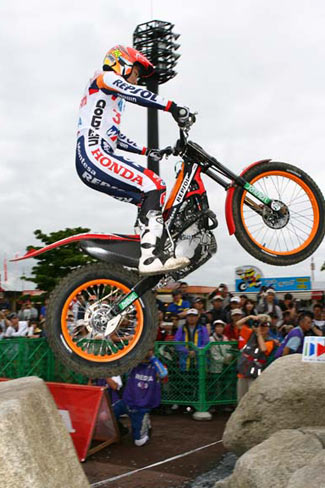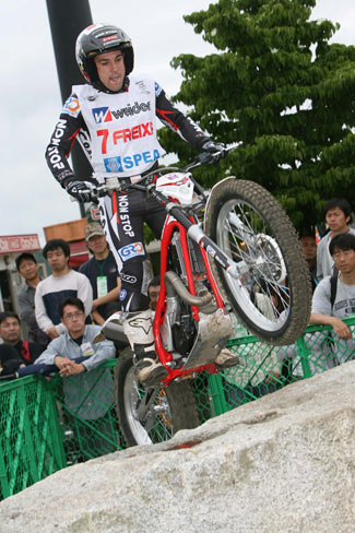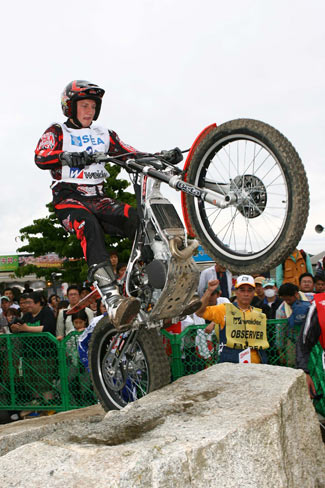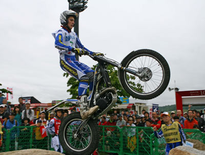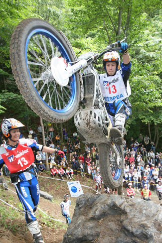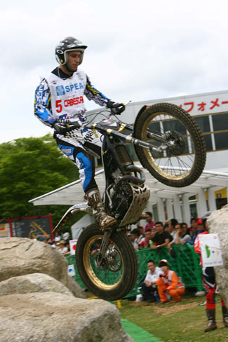 Bou fue simplemente magnífico, insuperable, ya desde el primer giro, logrando sumar tan sólo 2 puntos y causando la admiración del púlico japonés. Los demás estaban muy lejos. El ídolo local Takahisa Fujinami (Montesa) se colocaba segundo pero ya con 12 puntos, un buen resultado teniendo en lo reciente de la fuerte caída que le obligaba a retirarse en el primer día del Gran Premio de Gran Bretaña, de la que ha demostrado estar totalmente recuperado. Muy cerca estaba un acertado Dougie Lampkin (Beta) con 14, que en terreno mojado se encontraba como pez en el agua, mientras Adam Raga (Gas Gas) se colocaba justo detrás con 15, los mismos que Albert Cabestany (Sherco).