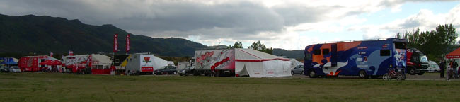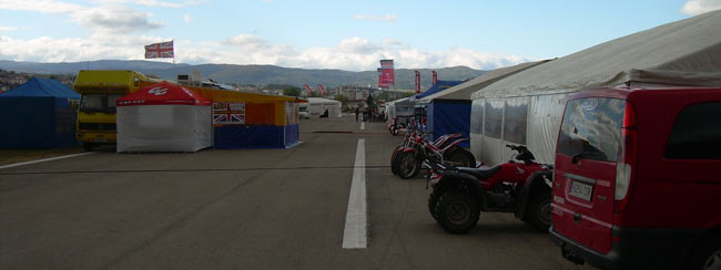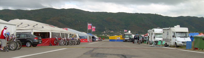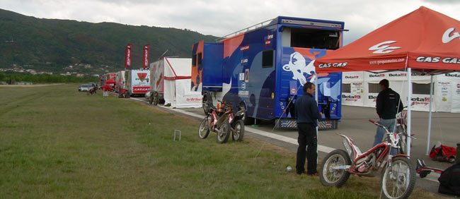 Ya está todo listo para el Mundial y el Europeo de trial, en un recorrido de 12 kilómetros, no demasiado accesible para el público, se combinan zonas de piedra, tierra, agua, y con mucha probabilidad de lluvia. El paddock ya está en marcha con el ir y venir de pilotos, equipos, prensa y público. Os dejamos las primeras fotos...