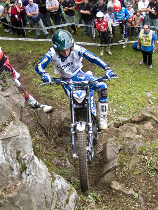 La lluvia caida durante la noche del sábado dejó el terreno húmedo y resbaladizo en algunos lugares, pero cuando el cielo descargó lluvia con fuerza en la segunda vuelta, los fuertes escalones sobre roca que predominaban en algunas zonas adoptaron un nuevo nivel de dificultad. Sin excepción, los cinco equipos de la categoría máxima aumentaron considerablemente sus puntuaciones en su segunda pasada por las 18 zonas del recorrido, situadas en los bosques que rodean Darfo Boario.