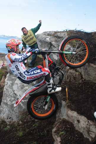 El gran beneficiado del trabajo de la organización fue el público, que vivió un trial con saltos imposibles, subidas impensables e innumerable cantidad de acciones que desafiaban las leyes de la gravedad. Porque emoción no hubo mucha. Bou se encargó de eliminarla con una extraordinaria primera pasada al recorrido. De hecho, de no habérsele atragantado las zonas diez y once, en las que cometió sendos fiascos, se habría proclamado ganador de la prueba inicial del Campeonato del Mundo, el Gran Premio de España, sin necesidad de disputar ninguna de las zonas en su segunda vuelta. Con todo, su inhumano comienzo de la prueba, con una tarjeta de 15 puntos al finalizar la primera pasada, le otorgaba una ventaja definitiva sobre sus rivales. Ellos sí eran humanos: Fujinami (30), Fajardo (31) y Raga (39).