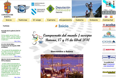 De hecho ya está todo listo y se tiene preparado hasta el último detalle. Hace tiempo que se ha puesto en marcha la página web oficial de la prueba en la dirección www.baionatrial2010.com, donde encontraréis toda la información sobre este completo fin de semana trialero: alojamientos, accesos, noticias, galerías de fotos, videos y toda la información para que vayáis preparando vuestro viaje a Baiona, una cita que va a merecer la pena.