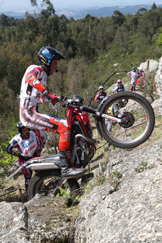El Gran Premio de Portugal en su jornada de sábado ha sido totalmente diferente a lo visto hace seis días en Baiona, pasando de un trial muy difícil a otro realmente fácil. Así las cosas Toni Bou se ha vuelto a imponer de manera contundente, rodando completamente a cero en las dos vueltas a las quince zonas. Albert Cabestany ha ocupado la segunda plaza con 8 puntos y Raga ha sido tercero con 10. Triple victoria española, pues Alfredo Gómez ha ganado en Junior y Pol Tarrés en Juvenil