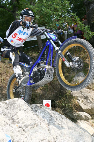 Incluso Bou fue sorprendido por estas condiciones extrañas, mostrándose un poco nervioso al inicio del trial y se dejaba un pie ya en la segunda zona. Bou era de los primeros en abrir las zonas, a causa de la discutida norma por la que el orden de salida se establece conforme a la clasificación de la prueba anterior, pero pese a ello se mostraba seguro y rápidamente recuperó los primeros errores, completando el primer giro con apenas 3 puntos.