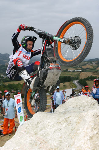 Toni Bou (Montesa) ha dado otro paso de gigante para asegurarse su cuarto título del Mundial de Trial consecutivo al adjudicarse otra contundente victoria, esta vez en la localidad de Baldasserona, San Marino. La sexta ronda del mundial ofreció zonas sencillas para los pilotos punteros, marcadas principalmente sobre roca de buena adherencia.