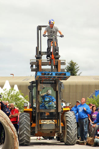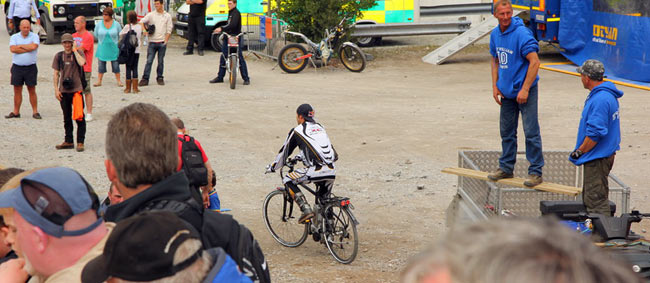 Lo primero fue un par de demostraciones de Danny MacAskill, el fenómeno del trial-bici street. MacAskill emocionó al público cuando demostró sus impresionantes habilidades, saltar 15 pies desde una carretilla elevadora, saltar sobre tubos de hormigón y todo ello interactuando con la multitud.