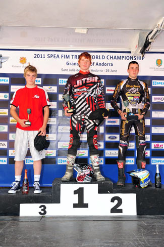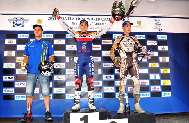 Cuarto Gran Premio del Mundial de Trial en Andorra, donde Toni Bou ha vuelto a imponerse de manera aplastante a todos sus rivales. Con unas zonas muy difíciles Bou se ha destacado aún más de lo habitual, gracias a una primera vuelta tras la que apenas dejaba opciones y una segunda en la que se destacaba aún más, finalizando con menos de la mitad de puntos que el segundo clasificado, su compañero de equipo Takahisa Fujinami. El podio lo ha completado Adam Raga. En Junior primera victoria del francés Alexandre Ferrer, seguido de Alfredo Gómez y Pol Tarrés y en Juvenil Jack Sheppard vuelve a ser el ganador seguido de Cedric Tempier y Eddie Karlsson.
