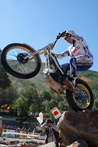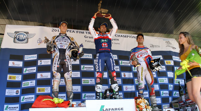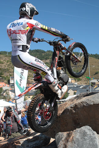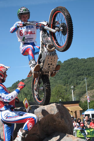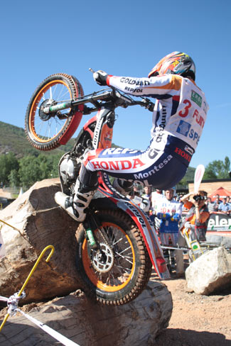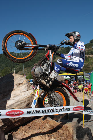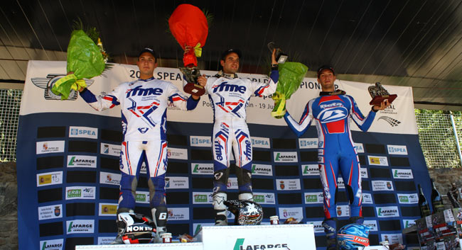 Sheppard, vencedor la jornada previa en el Europeo Junior, mejoraba en el segundo giro al sumar sólo 4 puntos, pero Tempier era aún mejor con 3 y se llevaba la victoria, derrotando por primera vez al hasta ahora invicto Challoner por 12 puntos frente a 14. Con sólo un punto más completaba el podio Steven Coquelin, desplazando a Giacomo Saleri fuera del podio (17). Los únicos españoles participantes, los hermanos Martín eran octavo (Jesús) y décimosegundo (Nacho). En la general Sheppard sigue líder con 77 puntospero Tempier recorta ventaja y es segundo con 67, tras ellos está Saleri con 58 y Coquelin con 56. En resumen un trial espectacular con un montaje impresionante y sobre todo la puesta de largo del primer "circuito permanente de trial" en España, todo un logro para este pequeño pueblo pinchando aquí. Toni Bou: "Me he sentido muy bien con la moto y creo que lo he demostrado con mi pilotaje. En la primera vuelta no era lo mejor ser el primero en pasar por las zonas de agua, que patinaban mucho. Y en el segundo giro he caído en la primera zona y en la siguiente he dejado un punto, pero después me he centrado y todo ha ido perfecto. Ha sido un día positivo bajo todos los puntos de vista y esta victoria tiene un buen valor de cara al campeonato". Adam Raga: "Estoy muy contento con esta segunda posición, porque es un buen resultado. Evidentemente hubiera preferido ganar, pero era un trial bastante fácil y recuperar puntos costaba mucho, de modo que los dos 5 que me han marcado en la primera vuelta, uno de ellos muy discutible, me han condicionado mucho. Aún así, he hecho la mejor segunda vuelta de todos, he podido remontar y pasar de la cuarta posición a la segunda. El fin de semana próximo llega la prueba de Andorra, en Sant Julià. Es un trial que me gusta, con muchos tipos de terreno y creo que podremos mantener el buen nivel que hemos demostrado hasta ahora. Será importante conseguir un buen resultado porque con la suspensión del GP de Polonia se pierde una carrera y esto no es positivo, ya que con menos resultados hay menos opciones de recuperarse de un posible error. Espero que al final se acabe viajando a Japón porque algunos pilotos no quieren ir si no se garantiza la seguridad y perder dos días más sería un grave problema".