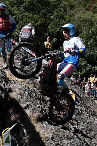 creado junto a las instalaciones del circuito de trial. Toni Bou (Montesa) ha sido quien ha marcado la pauta con el handicap añadido de tener que abrir las zonas, al haber sido el primero en tomar la salida entre los top, ya que esta se hace este año en el orden de la clasificación general, algo que, aunque favorece algo a los pilotos de atrás, al final resta espectáculo de cara al público y la verdad que los resultados siguen siendo los mismos, con una clara diferencia de puntuaciones entre los pilotos de cabeza y el resto. El pilotaje de Toni Bou ha sido impecable, dejándose tan sólo 3 pies sueltos a lo largo de toda la primera vuelta en las zonas 5, 9 y 13, las dos primeras de agua con partes muy resbaladizas. Algo más atrás estaba la apretada lucha por la segunda posición, el mejor colocado, aunque por muy poco era Albert Cabestany (Sherco), con 11 a causa de un fiasco en la 10, y muy cerca Takahisa Fujinami (Montesa) con 13, perjudicado por una caída espectacular en la zona 15, relativamente facil, seguido de Adam Raga (Gas Gas) con un punto más, habiendo incurrido en fiasco en las zonas 9 y 11.