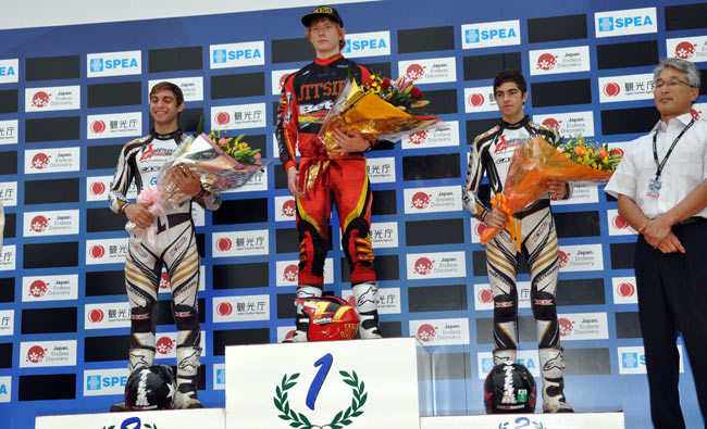 Fujinami era tercero pero muy alejado de los dos primeros, con un total de 64 puntos, obteniendo así su quinto podio del año por sólo un punto de ventaja sobre Jeroni Fajardo (Ossa) gracias al gran error cometido por este cuando penalizaba un fiasco en la última zona, de tipo indoor frente a las gradas.