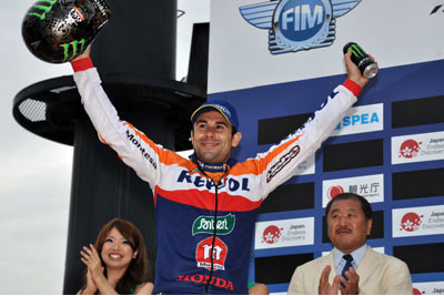 Takahisa Fujinami: "Estar en el podio ha sido muy especial. Para mi era muy importante, dada la situación que ha vivido mi país y para poder dedicarlo a toda la gente que este fin de semana ha acudido a Motegi. Delante mío han terminado dos pilotos muy fuertes y la diferencia de puntos ya lo dice todo. Me he sentido tenso, sin demasiada confianza y he cometido muchos errores pero lo he salvado... ¡por un punto!. Mañana intentaré repetir podio y, muy importante, no cediendo tantos puntos".