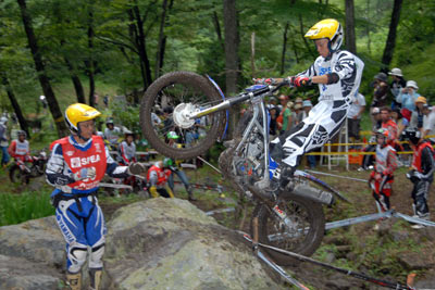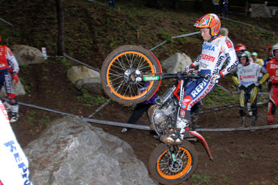 Bou y Raga se turnaban en el liderato del trial sobre las complicadas y resbaladizas zonas. El mejor parcial de Raga de 14 puntos fue impresionante, ya que fue el primer piloto en salir y tuvo que lidiar con los dos o tres centímetros de barro que cubría las colinas circundantes al circuito de velocidad.