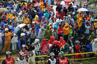 Pese a la lluvia el público japonés volvió a acudir en masa al trial, acumulándose en las zonas con sus paraguas y disfrutando del espectáculo, en el que ha sido un Gran Premio de Japón interesante y vistoso pero menos lucido que los anteriores por la falta notable de participantes habituales, especialmente en las categorías Junior y Juvenil, tras las polémicas por los posibles porblemas de radiación que os hemos ido contando en Todotrial.