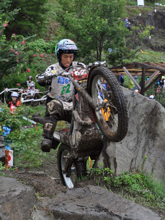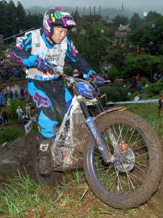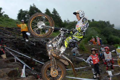 Después de las cinco primeras zonas de la primera vuelta parecía que Fujinami podría llevarse su primera victoria del año. El japonés estaba muy motivado freente a su público y se colocaba en cabeza. Raga había sumado tres cincos consecutivos en las secciones tres, cuatro y cinco, al igual que Bou. Fujinami se distanciaba levemente con una penalizacion de sólo 9 puntos, hasta que llegaba a la zona seis, en la que Raga se mostró superior y comenzó a destaca. El de Gas Gas se mostraba realmente acertado desde esta zona hasta la 12, logrando superar todas ellas a cero y con ello tomando el liderato del trial. Un tres en la difícil zona 13 y un impresionante uno en la siguiente le colocaban en cabeza al término del primer giro con 20 puntos, dos menos que Fujinami.