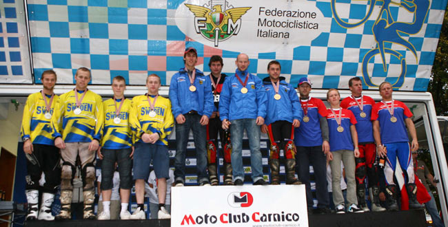 Para el deleite de la apasionada multitud italiana pudieron ver a su equipo en el tercer peldaño por segundo año consecutivo. Matteo Grattarola (Gas Gas), Francesco Iolitta (Beta), Fabio Lenzi (HM Future) y Daniele Maurino (Beta) trabajaron muy unidos para terminar con clara ventaja sobre sus eternos rivales, Francia, que no pudo mejorar la cuarta posición que logró hace doce meses.
