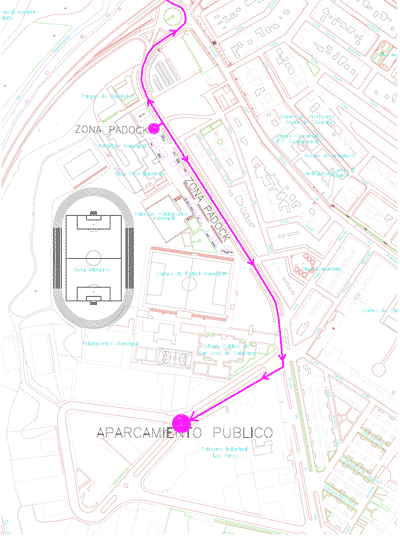 PARKING PARA EL PUBLICO. Se habilitan dos parking para el público asistente, uno en las inmediaciones del parque cerrado de la prueba, donde estarán instalados los equipos, camiones y demás que será el centro de operaciones de la prueba y donde tendrá lugar la salida (Pabellón Polideportivo), concretamente en el Polígono Los Pinos. (IMAGEN 1) Otro espacio se ubicará en el casco urbano, destinado a seguidores, que vengan de "acampada" o con vehículos tipo carabana donde se dispondrá de servicios. (IMAGEN 2) Con