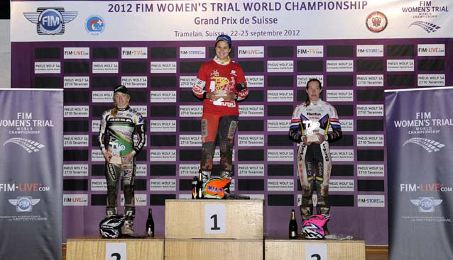 Laia Sanz (Gas Gas) ha logrado su décimosegundo Campeonato del Mundo de Trial de Féminas al ganar en la primera jornada del Gran Premio de Suiza en Tramelan, en una jornada decisiva. Y es que Laia ha sumando por tanto tres victorias consecutivas, lo que le otorga el título ya que este año la clasificación final se forma tomando los tres mejores resultados en las cinco rondas que forman el campeonato. Laia tuvo que luchar frente a la combativa Emma Bristow (Ossa) en el que ha sido un duro día de competición para adjudicarse su duocécima corona mundial, ya que las zonas eran mucho más duras de lo habitual y las puntuaciones muy altas. Esta última victoria Sanz y el título llega después de haber perdido dos meses y medio de entreno debido a una seria lesión que se produjo cuando se fracturó el dedo pulgar del pie derecho en el GP de Italia de enduro.