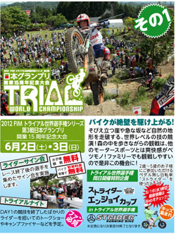 Takahisa Fujinami (Montesa) es actualmente quinto en la clasificación general, ha sido el único piloto japonés presente en las citas anteriores, pero este fin de semana estará acompañado por otros 20 compatriotas. Acompañando a Fujinami en la categoría World Pro estaran muchos de los pilotos locales favoritos como Kenichi Kuroyama (Yamaha), Fumitaka Nozaki (Yamaha), Tomoyuki Ogawa (Honda), Tsuyoshi Ogawa (Beta), Akira Shibata (Honda) y Akio Saito (Honda). El resto de los pilotos japoneses competirán en las categorias Junior, Juvenil y Open International.