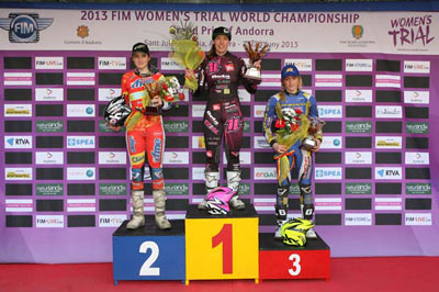 Rebekah Cook (Beta) logró su primera victoria mundialista en la jornada inaugural del Campeonato del Mundo de Trial Femenino FIM 2013 celebrada en Sant Julià de Loria, Andorra. Sandra Gómez (Ossa) fue segunda y Emma Bristow (Sherco) tercera. Con la doce veces Campeona del Mundo Laia Sanz ausente debido a la coincidencia de fechas con la prueba de Rumanía del Mundial de Enduro Femenino, en el que este año está centrando sus esfuerzos, competición que por cierto ha vencido, la lucha por la ansiada lucha por la victoria se abría totalmente. Así Cook lograba su primera victoria en un Gran Premio tomando el mando de la nueva temporada. A pesar de haber subido al podio en veinte ocasiones anteriormente, esta ha sido la primera vez que la británida de veintiséis años ha podido estar en lo más alto del podio al superar a la española Sandra Gomez por sólo cuatro puntos. La a priori favorito antes de este trial por su condición de actual subcampeona Emma Bristow (Sherco), sólo pudo ser tercera tras una segunda vuelta desastrosa.