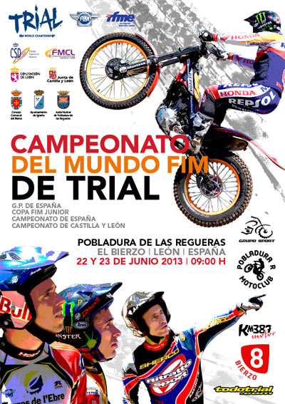 Cuando apenas queda un mes, ya está todo casi listo para la llegada del Gran Premio de España, cuarta prueba puntuable del Mundial de Trial 2013, que este año vuelve a Pobladura de las Regueras tras el gran éxito en el debut mundialista de este pequeño pueblo leonés hace dos años. Pobladura de las Regueras es todo un ejemplo a seguir por todos los vinculados con el mundo del trial, ya que no sólo allí se vienen celebrando numerosos triales sino que podría decirse que es el único "circuito permanente" de trial del que disponemos en España, contando con su propio parking, duchas, salas de oficinas, bungalows y otras instalaciones. Tras el gran éxito del Mundial 2011, Pobladura vuelve al panorama internacional los próximos 22 y 23 de junio, ya que el primer día se disputará la quinta cita del Campeonato de España, puntuable en este caso para las categorías TR3, TR4, Junior, Cadetes Féminas y Juveniles, además del Campeonato de Castilla y León, reservándose el domingo para el plato fuerte, la cuarta cita del Mundial. Entre los preparativos de este acontecimiento, el próximo sábado día 25 de mayo a las 12:30 en el Edificio Multiusos del Área de Trial de Pobladura de Las Regueras tendrá lugar la rueda de prensa de presentación de la prueba correspondiente al Campeonato del Mundo de Trial que se celebrará entre el 22 y el 23 de junio del presente año, fechas en las que también se celebrarán en Pobladura de Las Regueras las pruebas correspondientes a la Copa FIM Junior, Campeonato de España y Campeonato de Castilla y León. En dicha presentación tomarán parte: -
