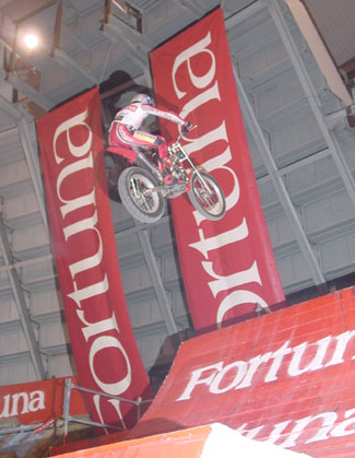 El simpático japonés Takahisa Fujinami era el primero en salir a pista tras una sencilla presentación de todos los pilotos. Fuji parecía estar muy fino, y marcaba un cero tras otro con bastante soltura hasta que en la sexta zona se dejaba un pie al desequilibrar la moto en un salto, la zona ocho, el castillo, la superaba sin problemas por lo que hasta el momento sólo llevaba un punto a falta de la cascada, el salto de altura y las dos carreras. La cascada es conocida por todos como una de las más complicadas, sin embargo Fuji la superó sin ninguna dificultad. Ante este resultado del primer participante de la noche, todos estaban un poco perplejos, pues las nueve zonas parecían muy sencillas, y si Fuji las había pasado así de bien, ¿los pilotos que suelen estar delante de él tampoco tendrían problemas? "No son tan fáciles como parecen, Fuji ha estado muy bien, no hay que confiarse" era el comentario general.
