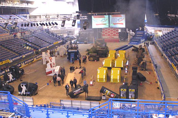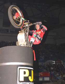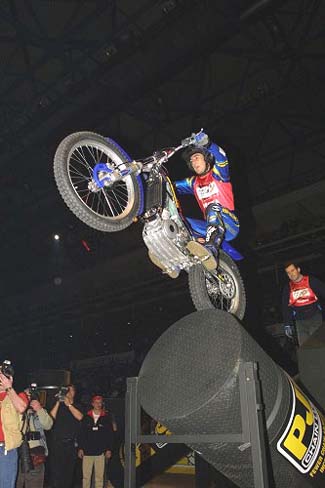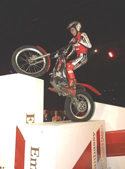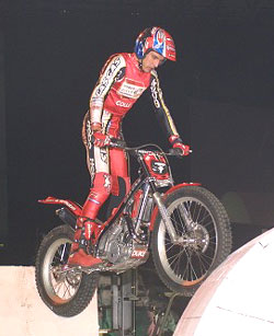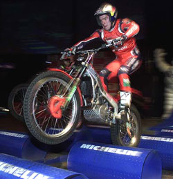 Pero vayamos ya a Sheffield, que ya tradicionalmente inaugura el Mundial Indoor. Como en anteriores ediciones el lleno era absoluto, las entradas quedaban agotadas y más de ocho mil espectadores se daban cita para aclamar a su ídolo, por supuesto Lampkin, y también al otro hombre fuerte de las islas británicas, el simpático Steve Colley, que acudía como piloto invitado, ya que este año no se encuentra entre los participantes fijos. La pretemporada no ha traído novedades demasiado sonadas, salvo los cambios de marca de Manzano y Alcaraz, por lo que en Sheffield no había ninguna curiosidad especial en este sentido, pero sí una importante novedad que puede deparar muchas sorpresas, la inclusión de Adam Raga por vez primera en este certámen. Raga ya demostró en los últimos triales celebrados en España que está muy fuerte, por lo que puede pasar de todo.