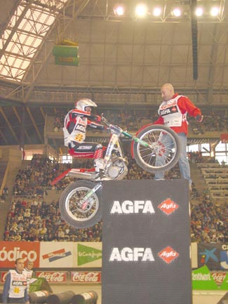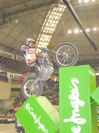 El campeón del mundo indoor era el siguiente en el turno de pilotos, y hay que decir que verdaderamente Albert empezaba fortísimo, encadenando cinco ceros en las primeras seis zonas, con la única excepción del fiasco en la zona Gran Hotel, moneda común entre todos los participantes, excluyendo a Lampkin, claro. Así las cosas quizás Cabestany se relajó un poquito, y le cayeron dos fiascos en La Caixa y Santiveri, que arregló un poco con un solitario uno en la segunda zona Agfa, donde los británicos solo habían podido pasar a varios. No obstante otro fiasco en la cascada le complicaba bastante las expectativas al de Tarragona, que se veía quedaba a solo dos puntos de Lampkin y Jarvis, cuando aún quedaban por delante el salto de altura y las carreras en paralelo.