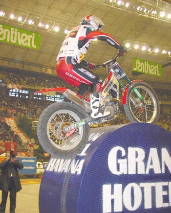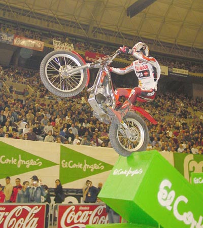 Pero vayamos por partes, y empecemos como es lógico por la primera vuelta, en donde se decidía el paso a la final entre Raga, Freixa, Lampkin, Cabestany, Fujinami y Jarvis. Tres Montesa, una Gas Gas, una Sherco y una Beta para más referencias. El Palau lleno hasta los topes con casi catorce mil espectadores impone mucho respeto, y aunque ya veteranos en estos temas, las caras de los pilotos en la presentación individual lo decían todo.