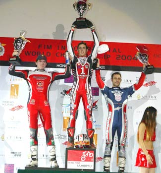 El español Adam Raga consiguió esta noche una histórica victoria en la primera edición del Trial Indoor de Hong Kong, segunda prueba puntuable del Campeonato del Mundo 2004. El piloto de Gas Gas, que defiende el título cosechado la pasada temporada, sumó su primer triunfo en el certamen y combinado con el segundo puesto obtenido hace una semana en Monza, Italia, empata a 18 puntos con Dougie Lampkin en la cabeza de la clasificación general. El británico de Montesa-HRC tuvo que conformarse con la segunda plaza tras cometer un fiasco en la tercera zona del recorrido final, que resultó decisiva para decantar el triunfo a favor de Raga. El tercer puesto del cajón lo ocupó Albert Cabestany, que sube al podio por primera vez en la temporada.