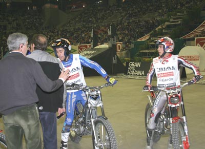 Un año más, el Palau Sant Jordi presentaba un gran aspecto con 12.500 personas poblando las gradas. El XXVIII Trial Indoor de Barcelona estaba a punto de ponerse en marcha. Los minutos previos eran aprovechados por los seis pilotos participantes en la Ciudad Condal para hacer ejercicios de calentamiento con sus monturas. El aspecto de Adam Raga denotaba tranquilidad y a la vez inquietud por saber si sería capaz de conseguir su cuarta victoria consecutiva en Barcelona. Majestuosa la ovación del público catalán cuando el bi-Campeón del Mundo de Trial Indoor saltaba a la pista. Todo parecía encaminado para que, de nuevo, el piloto de Ulldecona se subiera a lo más alto del podio.
