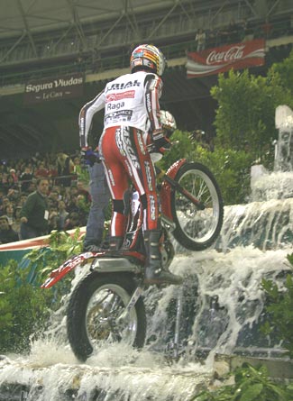 El Indoor de Barcelona es la cita que contiene más zonas con respecto al resto de triales del calendario. Un total de 15 secciones (doce de obstáculos, dos carreras y una de salto de altura) conforman el desafío para los siete pilotos que tomarán parte el próximo domingo a las 17 horas en el espectacular recinto olímpico catalán. "Barcelona llega en un gran momento, declara Raga, Estoy con una gran motivación para conseguir la victoria. En mi opinión, es uno de los triales más difíciles del mundial, muy largo y, además, tendremos el incentivo de correr en casa y hacerlo bien. La verdad es que presión siempre hay, ya que deseas que todo salga perfecto y que no se cometan fallos. Es como un reto para todos, y añade creo que mi principal rival ahora mismo es Albert Cabestany, lo está haciendo bien pero de ninguna manera hay que perder la pista de Lampkin y Fujinami. Sus monturas 4T van mejorando y cada día están más cerca de nosotros. Personalmente, mi GG TXT 300 de 2T funciona a la perfección y espero que siga igual.