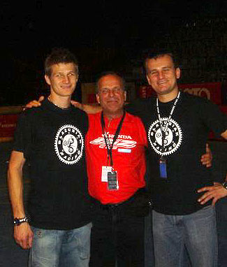 Manuel Piquero, director de carrera, con los hermanos Blazusiak