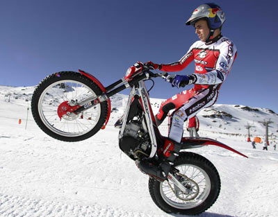 A lomos de su Gas Gas y ante la sorpresa de los esquiadores que han acudido hoy a la estación de esquí andaluza, Raga ha llegado hasta las pistas de Sierra Nevada y ha realizado allí piruetas y equilibrios de todo tipo. El Campeón del Mundo de Trial Indoor se ha mostrado encantado con esta nueva experiencia: Ha sido muy divertido pilotar mi Gas Gas sobre la nieve pese a que, evidentemente, estas no son las condiciones idóneas para sacarle el máximo partido a una moto de trial. Me lo he pasado muy bien y he vivido una experiencia que nunca antes había experimentado. Creo que iniciativas como esta son muy importantes para el crecimiento de este deporte y agradezco a Sierra Nevada la oportunidad que me ha brindado de poder evolucionar con mi moto sobre la nieve.