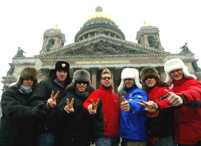 Los pilotos haciendo turismo por Sant Petersburgo