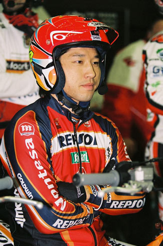 Fujinami con su habitual casco con sistema de