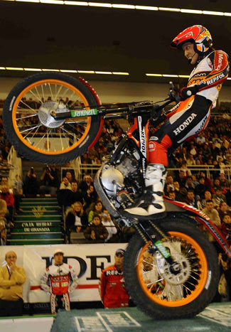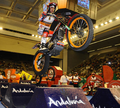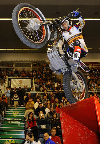 Toni Bou ha ofrecido este sábado en Granada una nueva lección de coraje y pundonor que le ha conducido a sumar su segundo triunfo de la temporada y ampliar su ventaja al frente de la general del Mundial de Trial Indoor.