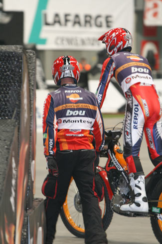 Albert Cabestany: He empatado con Raga en la general, todo y que he quedado delante de él en tres de las cinco carreras, pero estoy contento, porque hacía mucho que no empataba con Raga en el Mundial Indoor, y eso me ha dado mucha confianza. El Mundial Outdoor estará también muy complicado, porque no solo Bou y Raga van muy fuerte, si no que los demás también, será difícil, pero creo que tenemos una buena moto y calidad suficiente como para estar ganando. Aunque con Toni lo tenemos difícil, ya que a pesar de que se cae gana, así que estará complicado, pero para eso entrenamos, Sherco confía en mí y yo quiero responder.