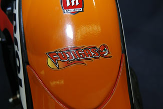 Detalle del deposito de la moto de Fuji