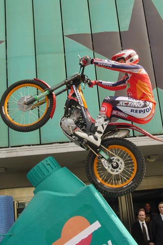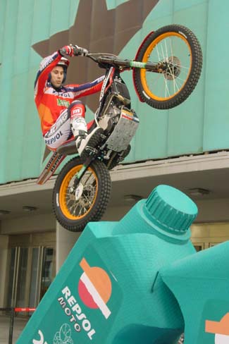 Toni Bou también ha estado presente en dicho acto, en el cual tras unas palabras se ha subido a su Montesa HRC para ofrecer una exhibición.