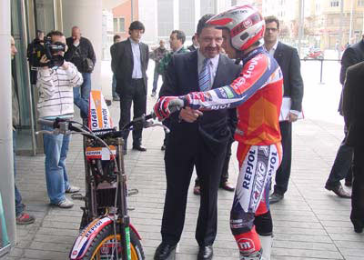 El acto de presentación ha contado con la presencia del vicepresidente de la Federación Española de Motociclismo y Presidente de la Federación Madrileña de Motociclismo, don Fernando Gutiérrez, con el director de patrocinios de Repsol, don Javier Inclán, y también con el Consejero de deportes de la Comunidad de Madrid, don Alberto Lopez Viejo.