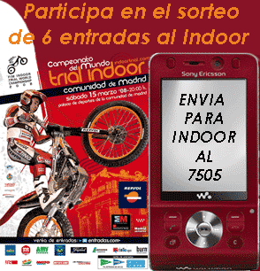 Como en cada prueba del Mundial Indoor podrás recibir en tu móvil los resultados de este Trial Indoor de Madrid, quinta y definitiva prueba del Mundial 2008, que se disputa este sábado 15 de Marzo.