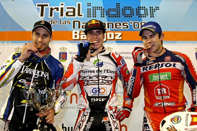 En el Trial Indoor de las Naciones las puntuaciones cambian en respeto al Campeonato de España de Trial Indoor, siendo el equipo que pasa la zona con menor puntuación el que suma tres puntos, el segundo dos y el tercero uno. En caso de empate en la primera posición entre dos o más equipos todos ellos sumarían tres puntos y así sucesivamente, con lo que llegados al ecuador de la prueba España lideraba con 15 puntos, Japón en segundo lugar con 13 y Gran Bretaña tercera con 9. Los japoneses con Takahisha Fujinami a la cabeza han impuesto presión a los españoles, que han empezado la noche sin mostrar el potencial al que nos tienen acostumbrados. Tras la conclusión de la primera vuelta España seguía líder (30) pero Gran Bretaña (19) se había acercado a Japón (24).