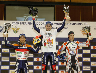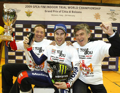 Toni Bou (Montesa HRC) ha logrado su tercer Campeonato del Mundo Indoor consecutivo gracias a una sonada victoria en le penúltima cita de la temporada 2009 celebrada en la localidad italiana de Bolzano.