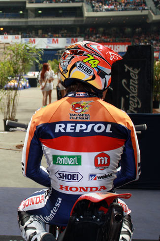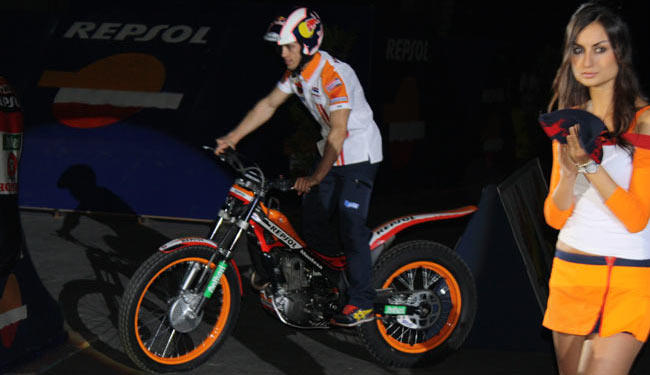 al final tuvo que cojer la segunda moto, una 4RT Repsol