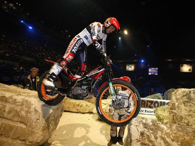 Barcelona, 31.01.2010.- Toni Bou (Montesa Cota 4RT) se ha impuesto con gran autoridad en la 33ª edición del Trial Indoor de Barcelona, tercera prueba puntuable para el Campeonato del Mundo, disputado este domingo en el Palau Sant Jordi. Con este triunfo, el segundo de la temporada, el piloto de Montesa pasa a liderar el solitario la clasificación general. Takahisa Fujinami (Montesa Cota 4RT) ha mejorado notablemente sus resultados de las dos pruebas anteriores y ha finalizado a un solo punto del podio.