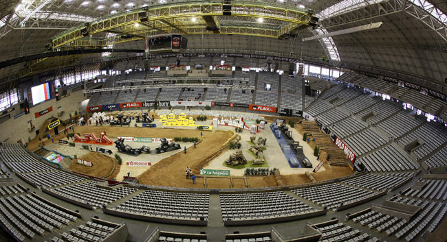 El impresionante estadio Palau Sant Jordi de Barcelona está listo para acoger la tercera ronda del Mundial de Trial Indoor o X-Trial 2011 este domingo por la tarde.