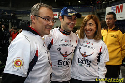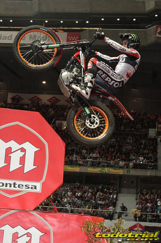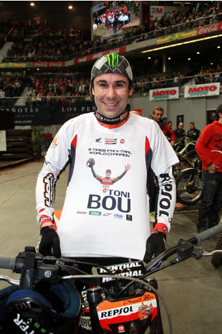Toni Bou, ha hecho historia en Madrid al conseguir por quinta vez consecutiva en su carrera el título de Campeón del Mundo de Trial Indoor, en una prueba emocionante en la que Bou se ha mostrado merecedor del título y ha hecho vibrar al público.