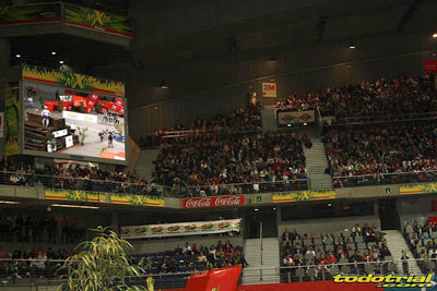 La crisis se deja notar en todos los sentidos y la falta de sponsors en los indoor hace que se tengan que contener los gastos, así este trial, pese a contar con unas zonas técnicas y bien realizadas, estaba a años luz de los habituales triales franceses en cuanto a decoración y espectáculo. No había apenas decorado, ni espectáculos de luz y sonido, ni si quiera tuvimos este año a las esperadas animadoras y sus bailes ni tampoco la presentación del equipo Repsol de MotoGP como en las dos ediciones anteriores.